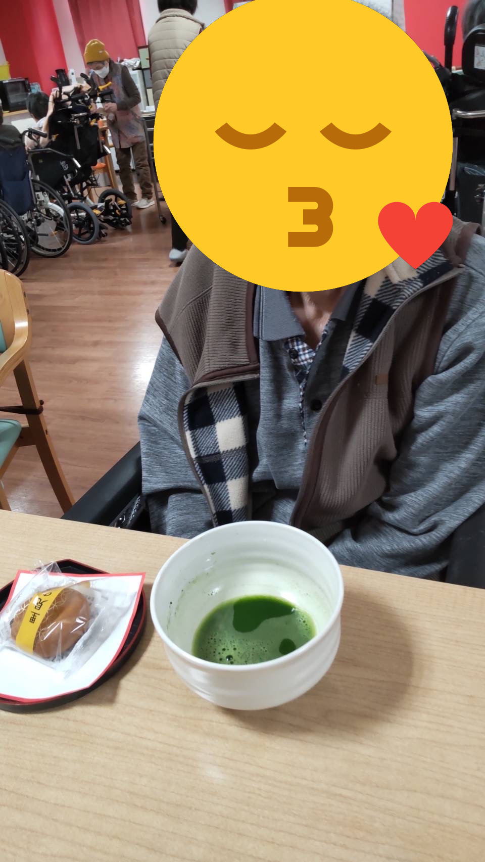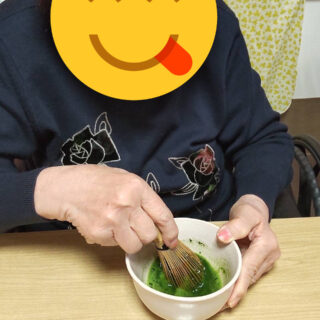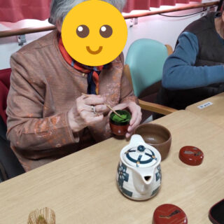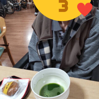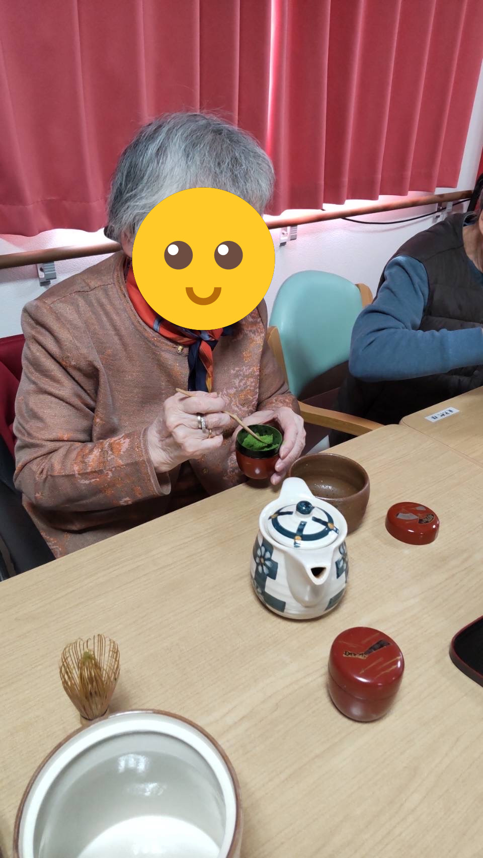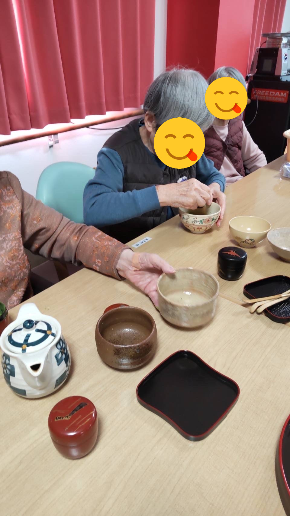 お茶会をしながら横では機能訓練の先生の体操🤸♀️