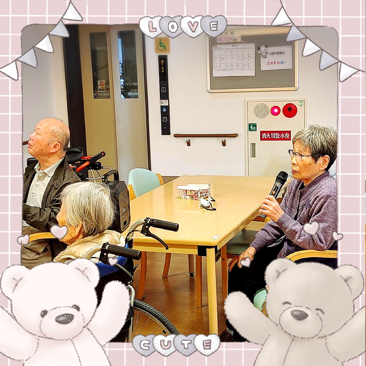 昼食後、入居者様がカラオケしたいなぁ✨と事務所に来られました。今日は14時半からやりましょう👍となり、それぞれお気に入りの曲を歌って頂きました。『やっぱりカラオケはすっきりするわ〜😆』『毎日カラオケしたいなぁ💕』とほんとに皆様カラオケ大好きです!楽しい時間はあっという間!!また歌いましょうね〜〜〜😘