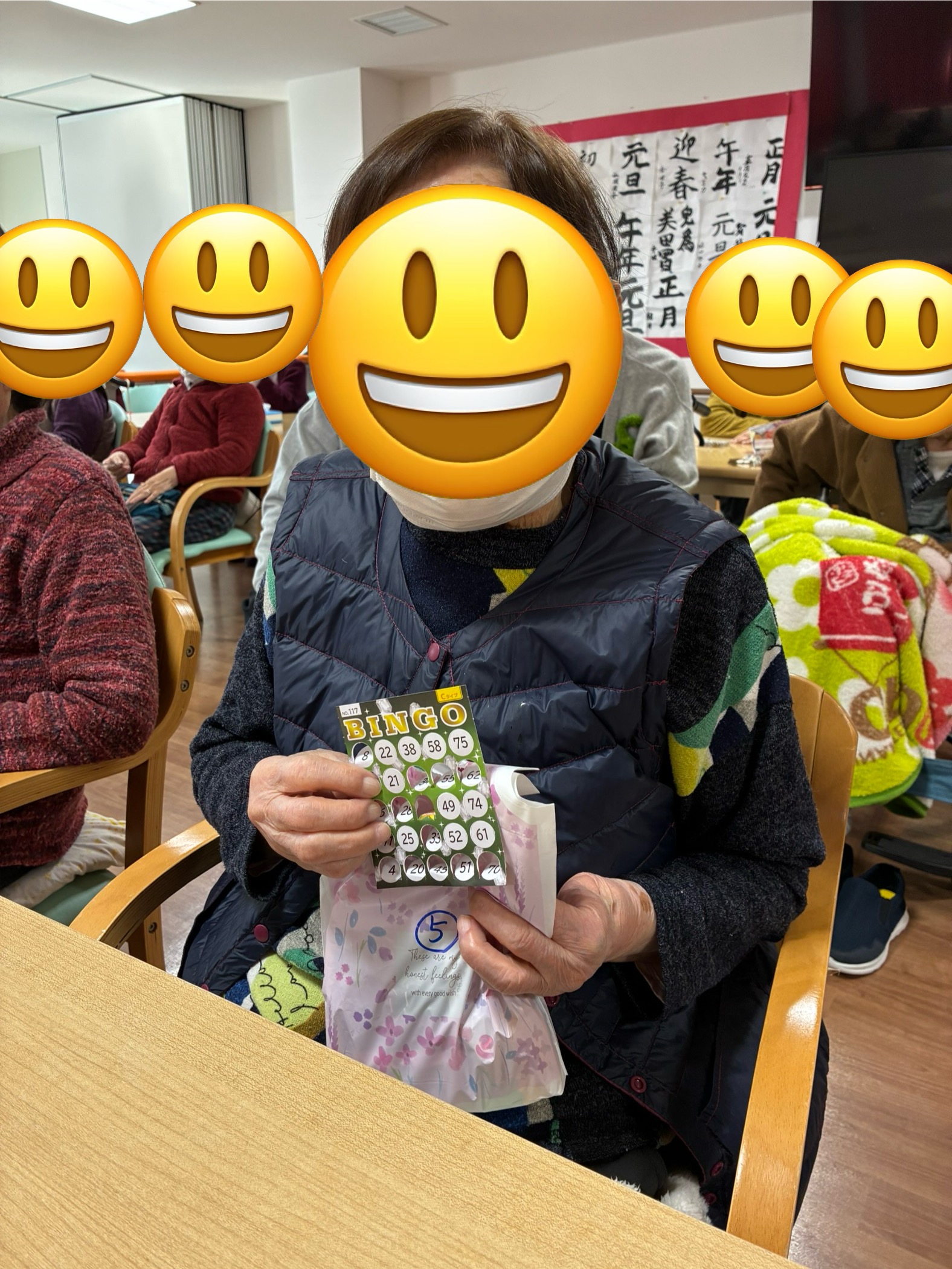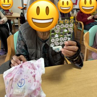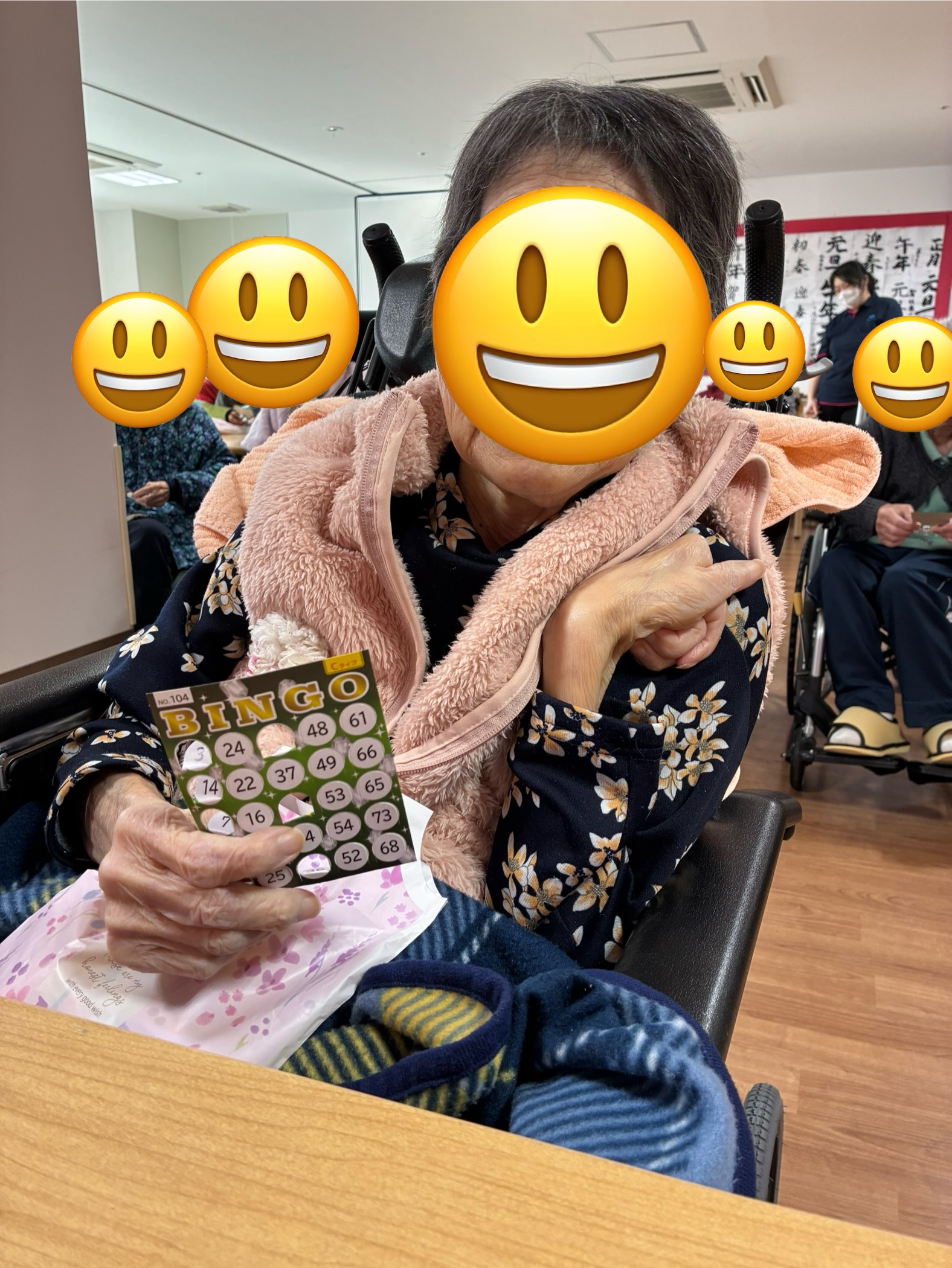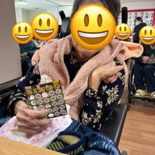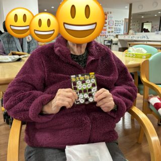 本日はレクでビンゴ大会を開催しました😁先着6名様に景品があり、皆様ルーレットが回るたびに「〇番が欲しい!」「〇番出して!」と願われる方が多かったです🥰景品が無くなった時点でビンゴゲーム終了😊「またやってや!」「やっぱりビンゴは楽しいわ😊」と皆様楽しんでおられました🥰