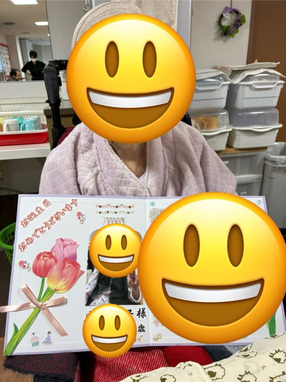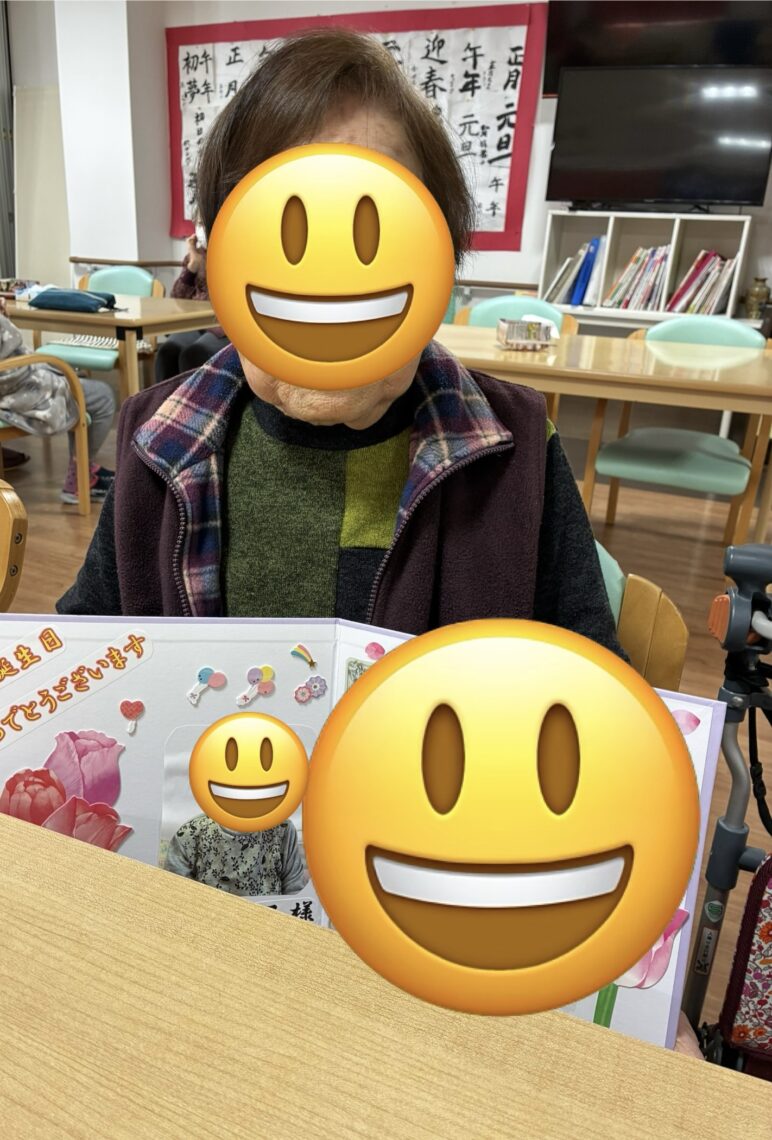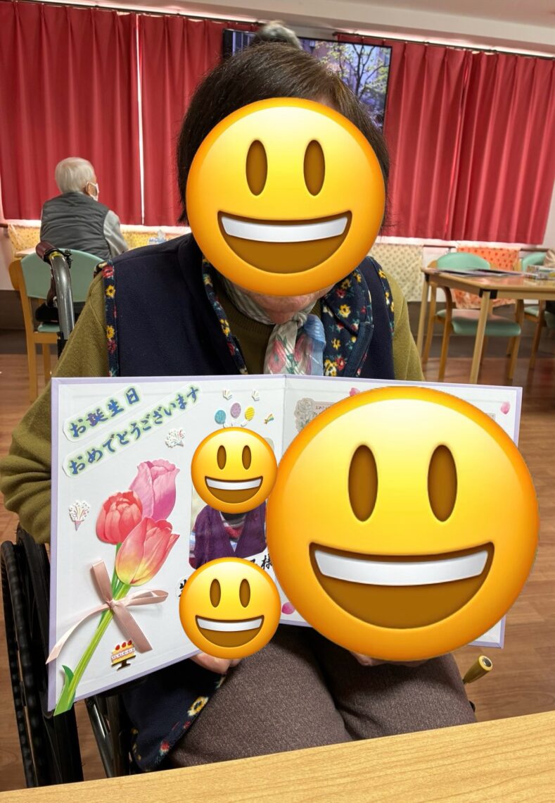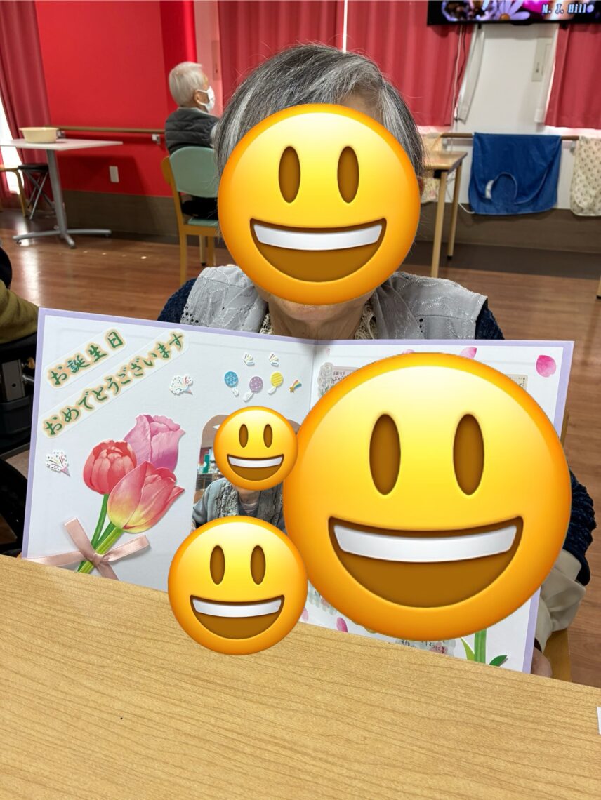 1月誕生日の方の誕生日会を開催しました🎂皆様に一言ずつ抱負をいただきました🤗職員からのメッセージ色紙をお渡しし、皆様でハッピーバースデイを合唱しました🥳