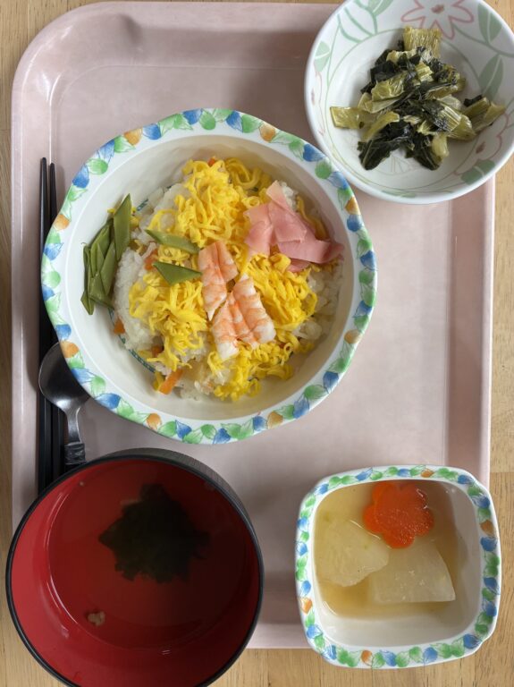 本日の昼食はちらし寿司でした🥰「綺麗やな🤗」と皆様食べるのが惜しそうにしておられましたが、あっという間に召し上がっておられました🥰