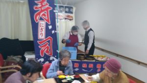 当日は施設にて目の前でにぎり寿司を握っていただきました!