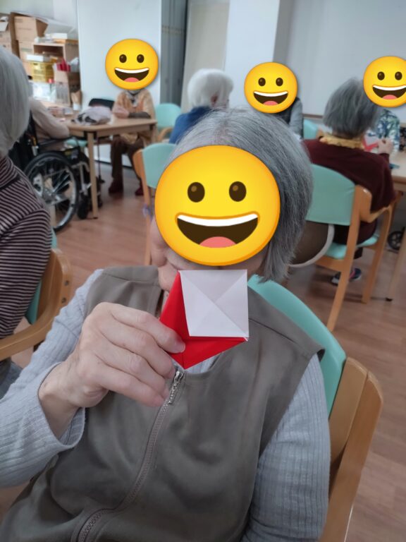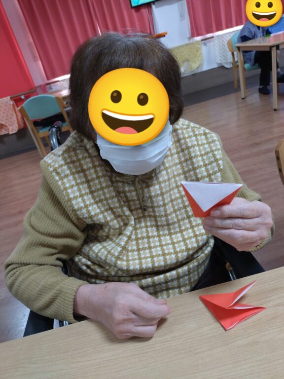 今日は折り紙レクを開催しました🌞利用者様に折り紙で財布を折って頂きました👛皆様「どうやって折るの?」と熱心にされ出来た時は喜んでおられました🤗「何折るか分からんかった」と昔によく折られた事があるカブトを折っておられる方もおられました🤣