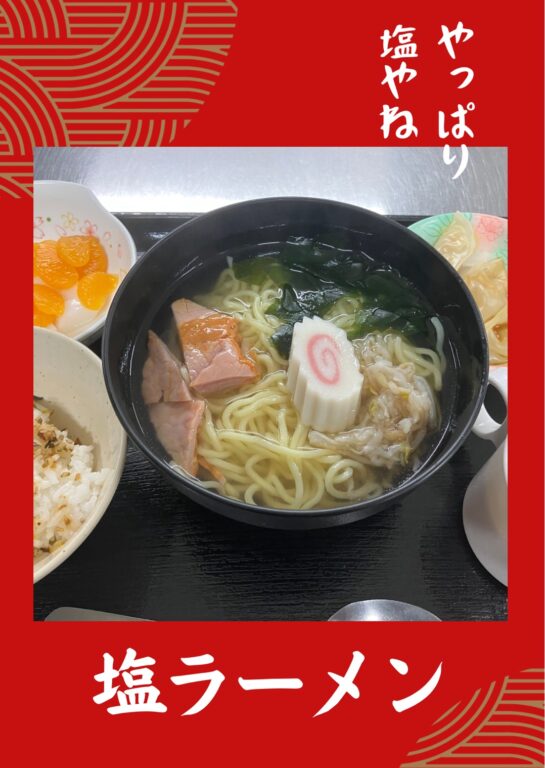 6月から厨房が変わり美味しくなっています。郷土の料理や外国の料理が出てくることもあります。馴染みのない料理には賛否ありますが、今日はラーメン!!!みんなが大好き、ラーメンです。温かいお汁を入れて頂くために厨房スタッフも、配膳スタッフも大変ですが、皆様に喜んでいただけるならなんのその!食べる事だけが楽しみ?の方もいらっしゃっるので食の楽しみは大切ですね。