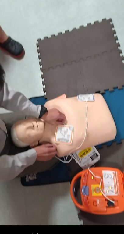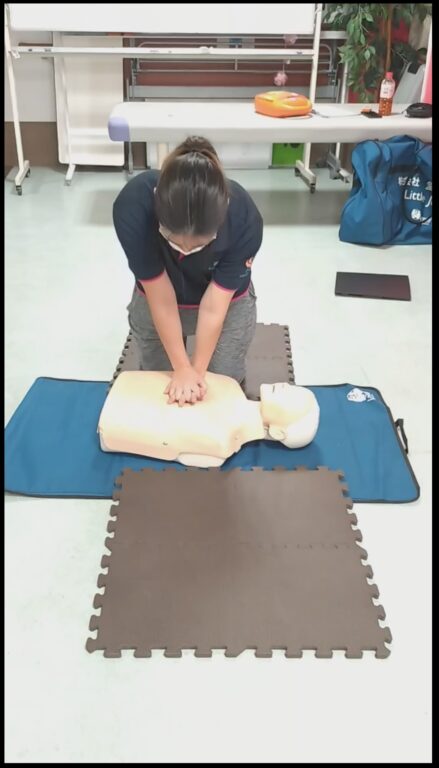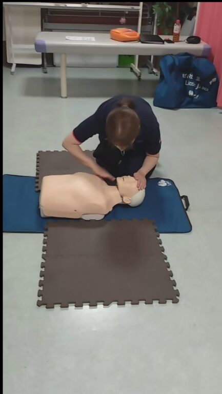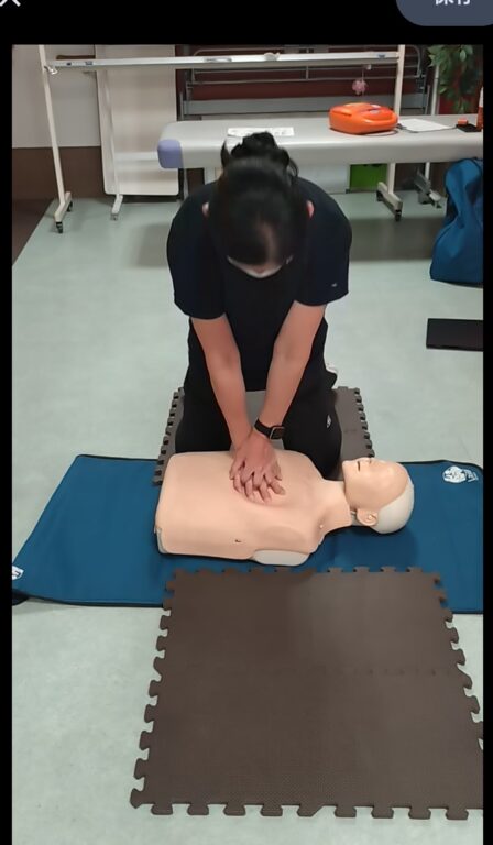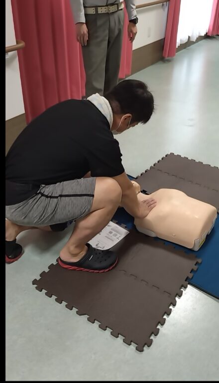 寿福の郷大和高田では大和高田消防署から救命士に来ていただき、・一次救命処置の流れ・胸骨圧迫・AEDの使用方法・窒息時の対応を講習していただきました。