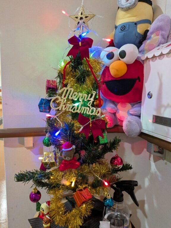 あと1ヶ月ほどでクリスマスですね。今年もツリーがキラキラ、入居者様も立ち止まって見とれてらっしゃいます。