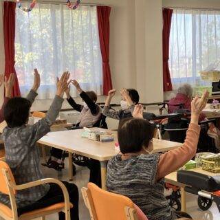 昼食前にラジオ体操や梅干し体操をしています(*^^*)
