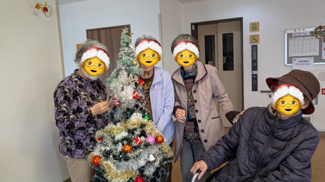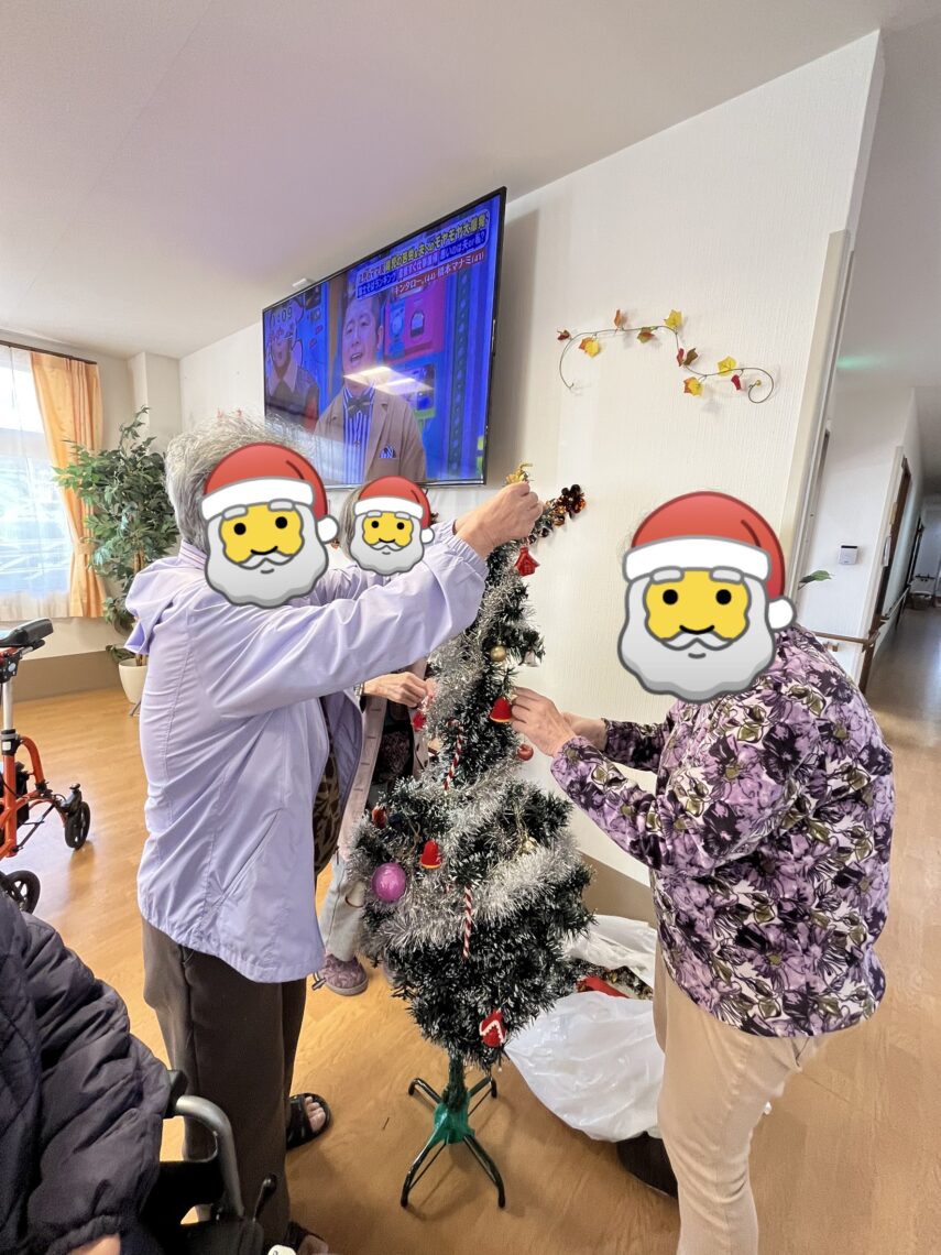 と突っ込み入ったりしながら、歌を歌いながら楽しく入居者様と一緒にクリスマスツリーの飾り付けをしました🎄.*🎄.*