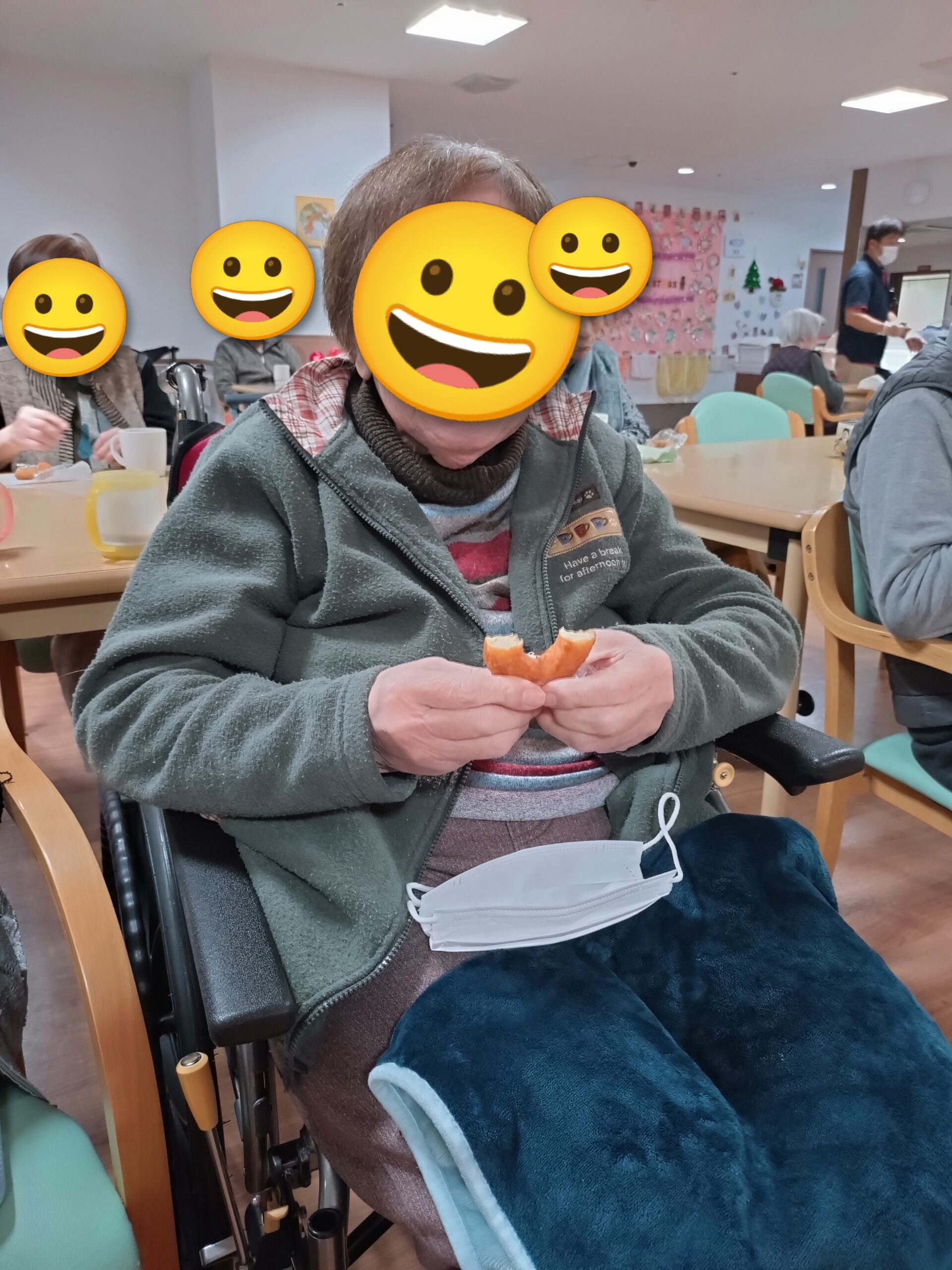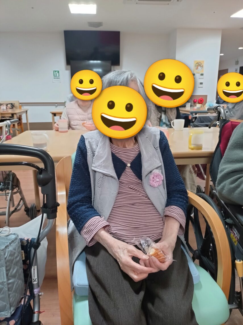 今日はレクリエーションに連想ゲームをした後、おやつにドーナツを皆様に召し上がって頂きました🍩皆様「このドーナツ美味しいな🤗」と笑顔で召し上がっていました😊