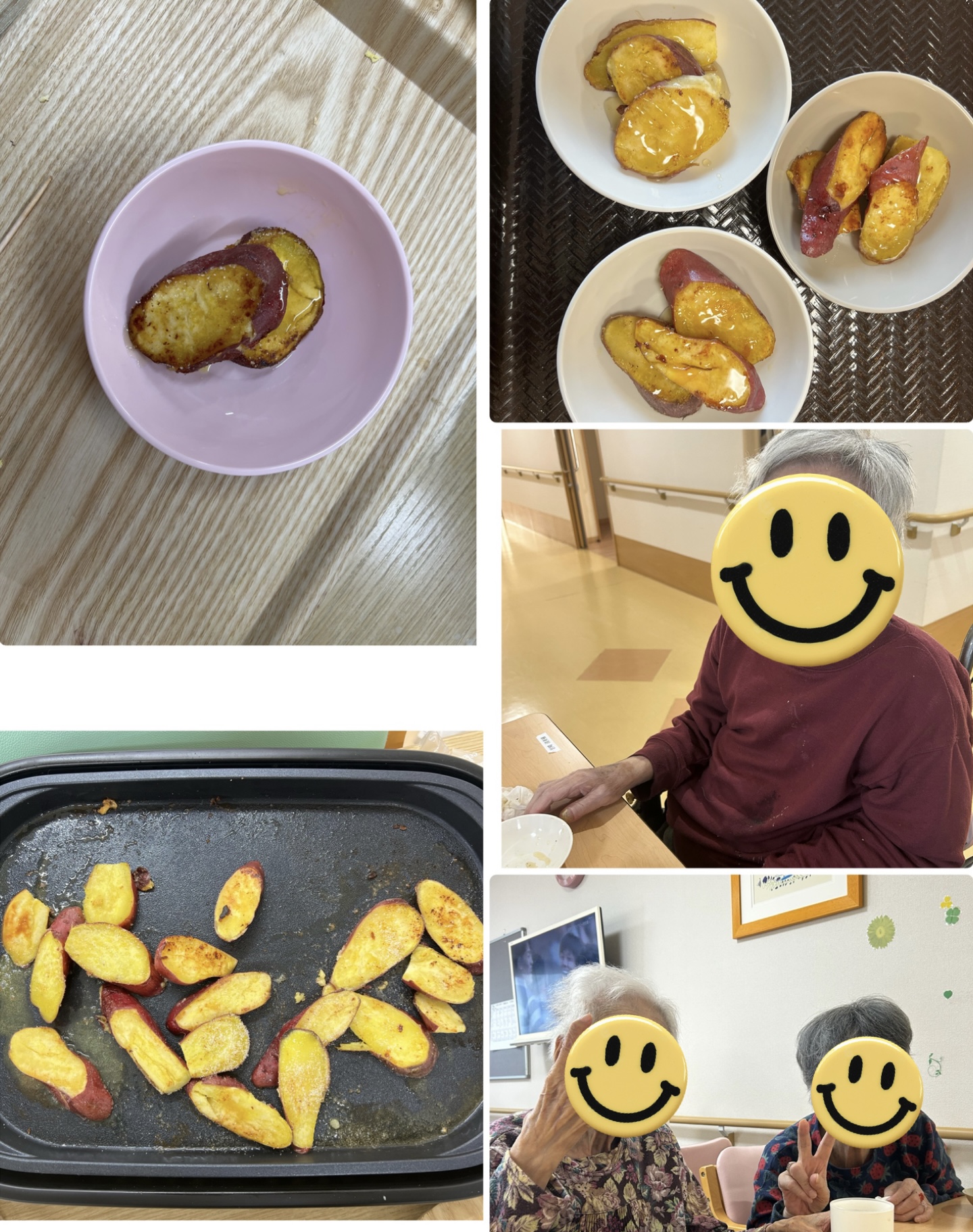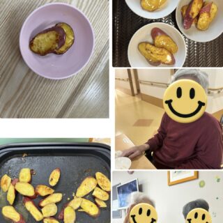 12月7日(日)2階の入居者様におやつレク開催しました。 今回はキャラメリゼ大学いも〜西板持風〜を召し上がって頂きました。 皆様、笑顔多く見られ「 美味しかった」と大満足でした😊 普段食事が進まない方も、「まだ、ありますか?」 と尋ねられてたくさん食べられていました😋