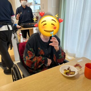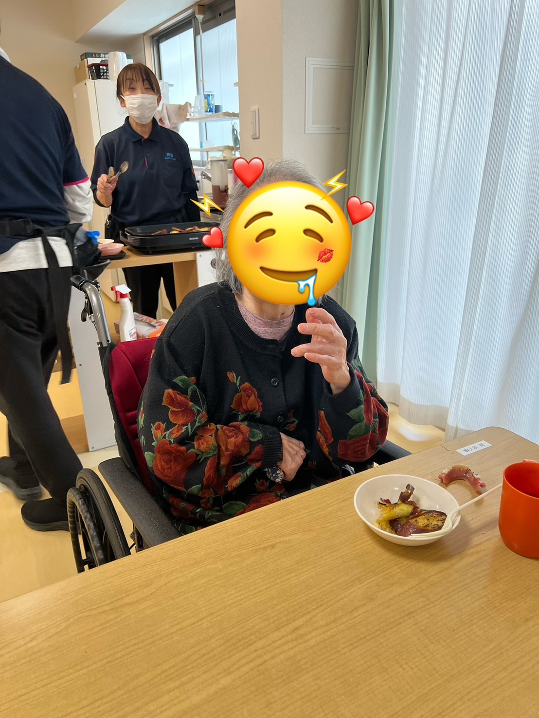 12月14日(日)に3階入居者様のおやつレクを開催しましたー‼️😊 前回に引き続きキャラメリゼ大学芋〜西板持風〜を召し上がってもらいました!😊 終始笑顔が絶えず何度もおかわりしたり、「やっぱ芋は美味しいなー」などの声がありました!