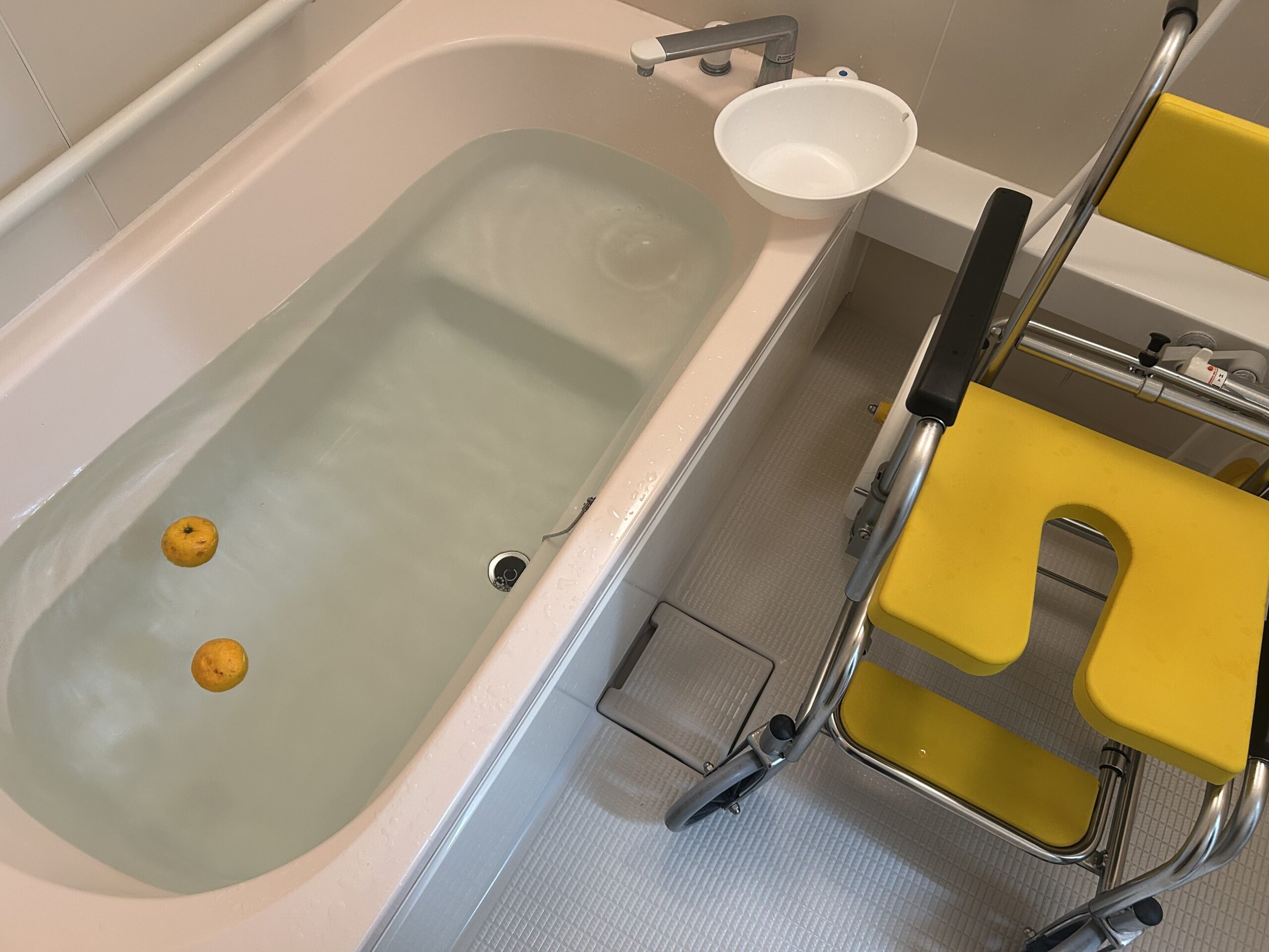 12月22日(月)冬至ということで、肌の刺激があるので、少し少なめのゆずではありますがゆず湯に入っていただきました😊❗️