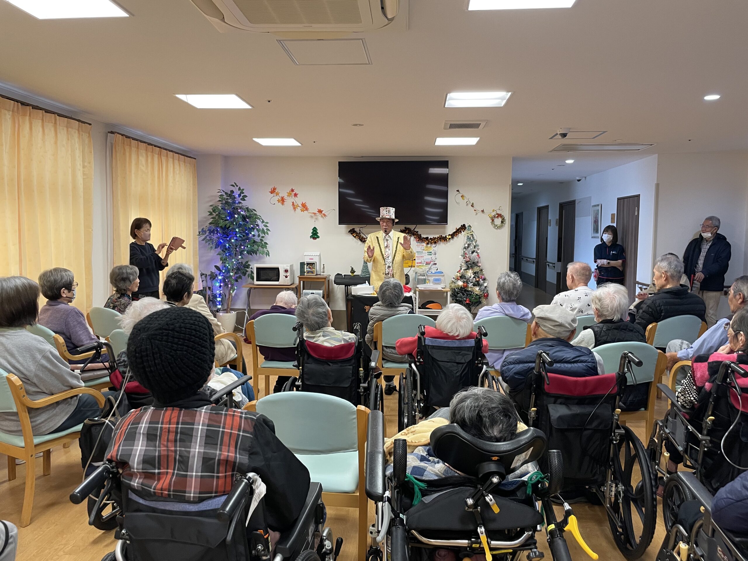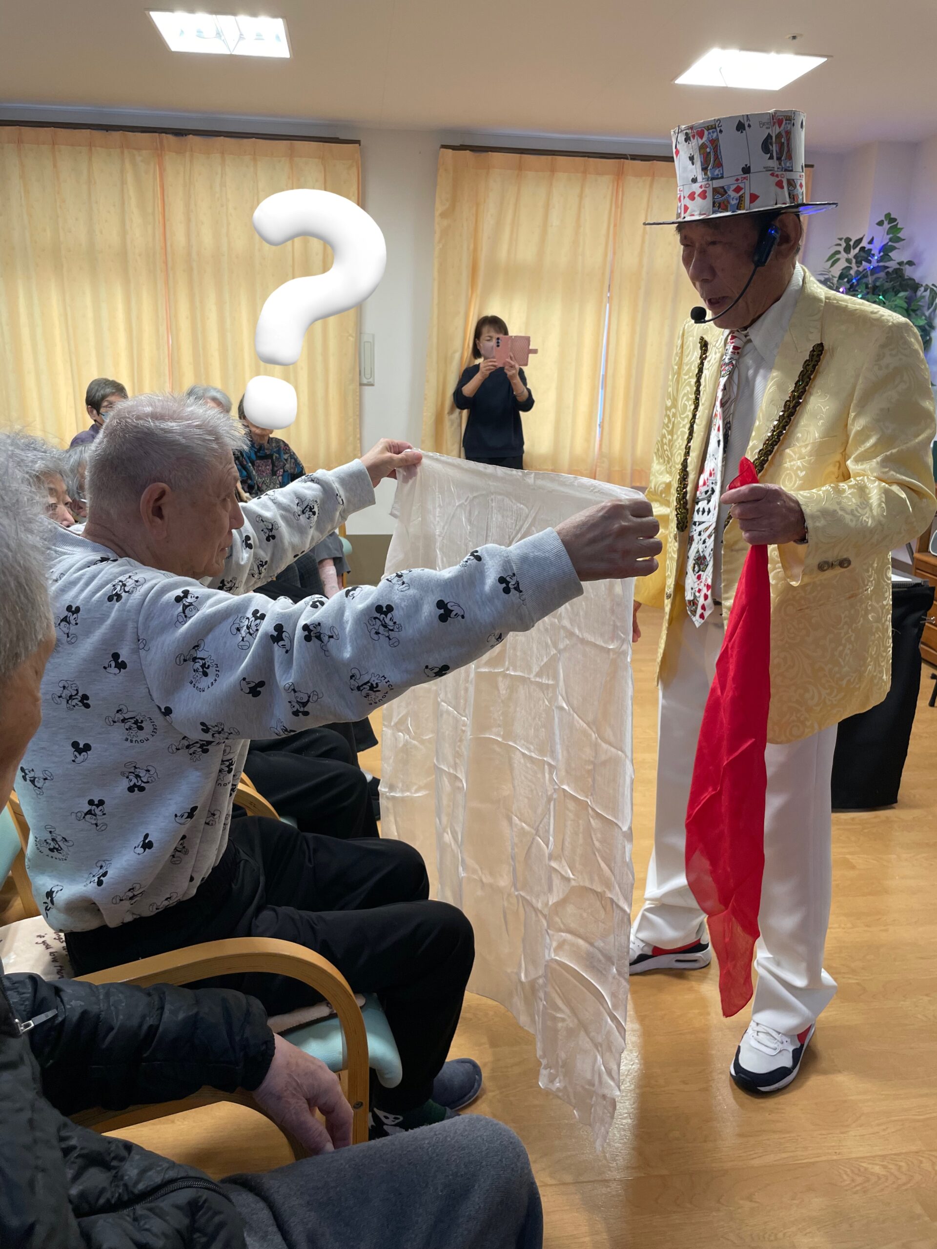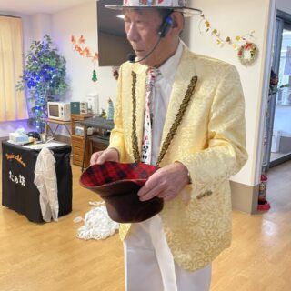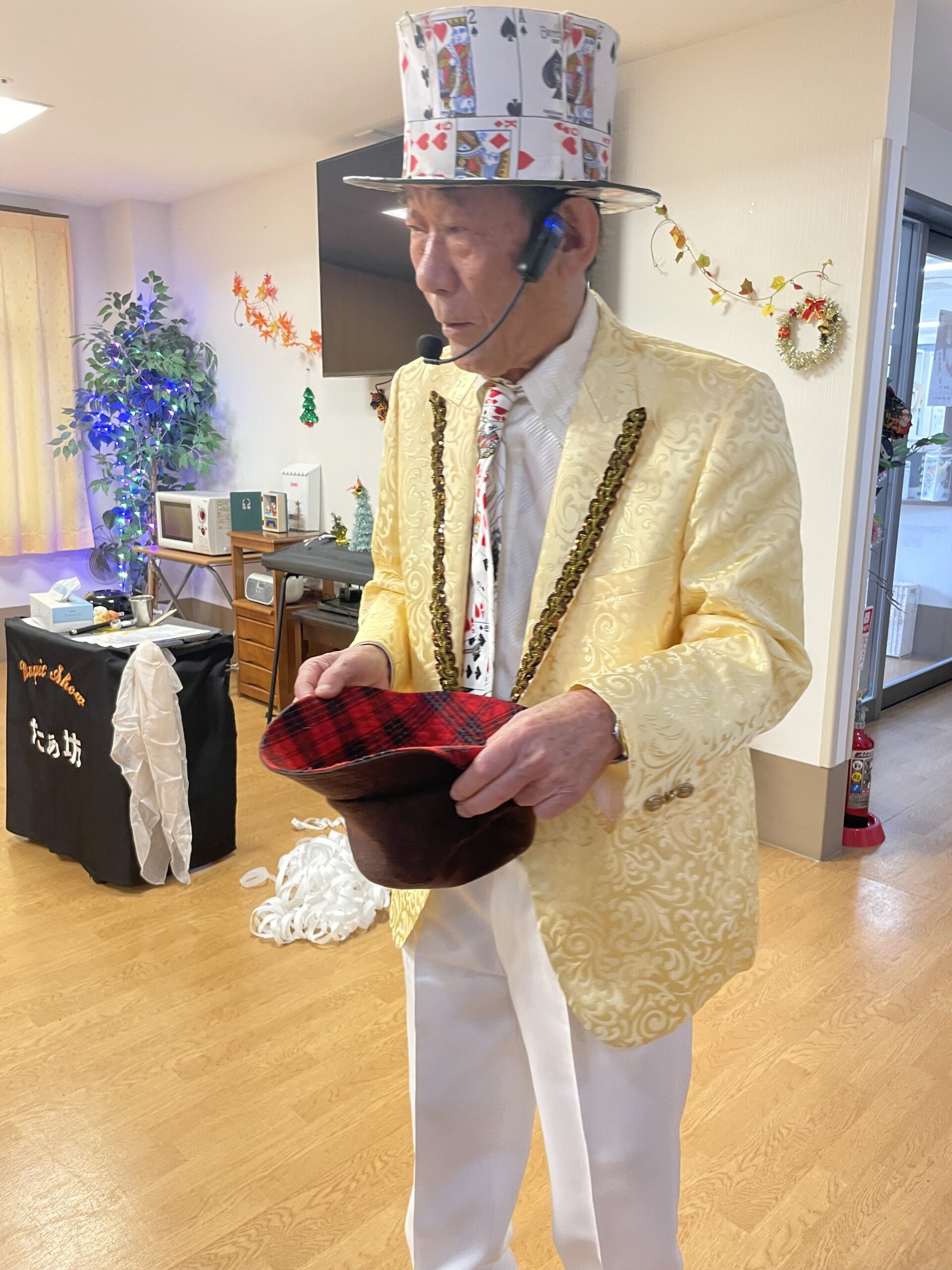 マジシャンのたぁ坊さんが、寿福の郷・川西にやってきました。
