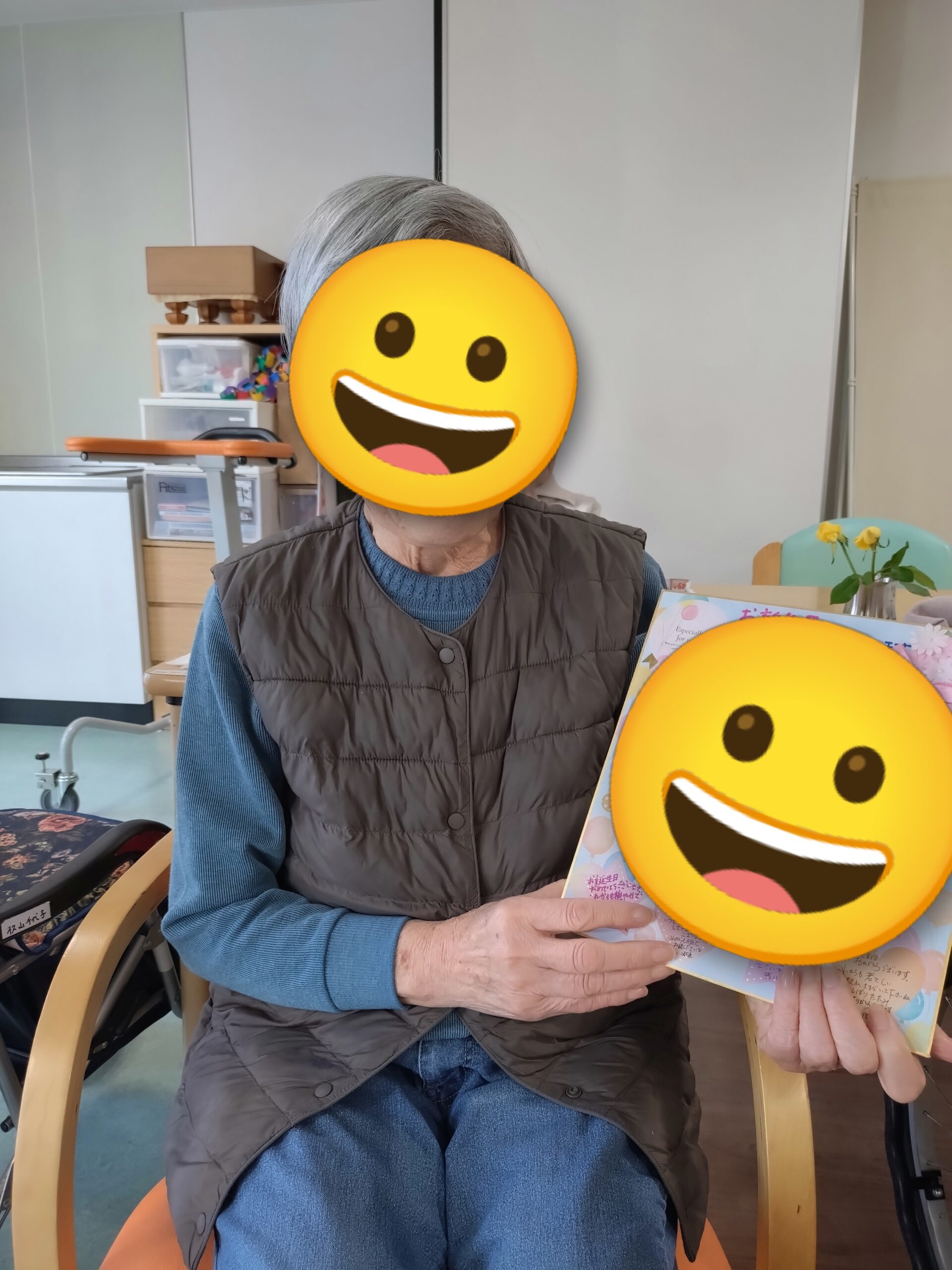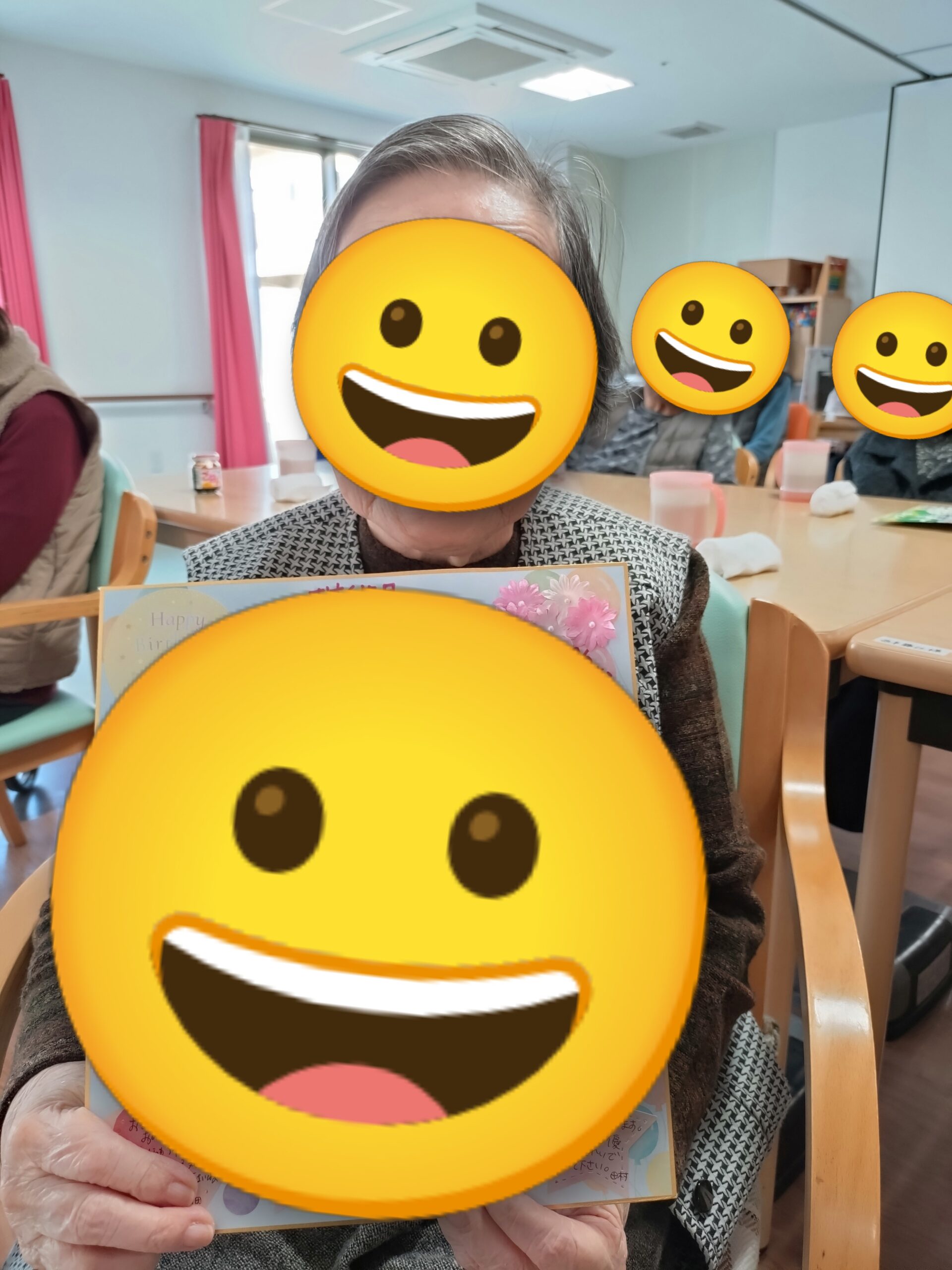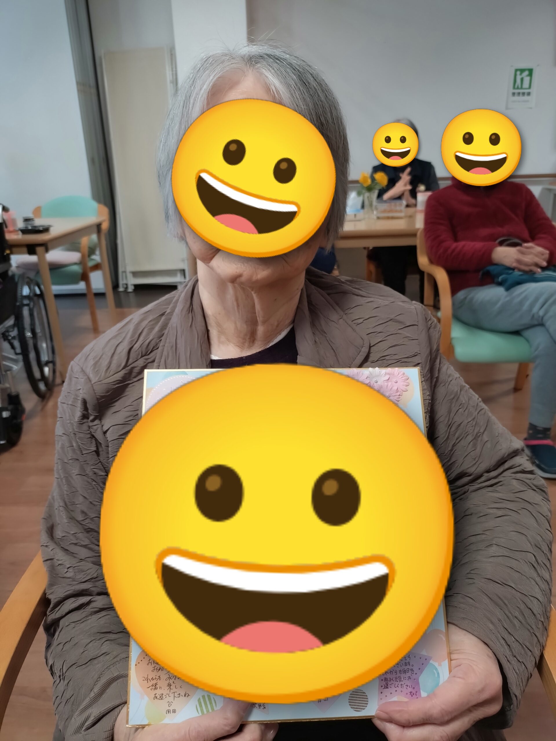 12月生まれ3名の方の誕生日会を開催しました🎂「100歳まで頑張ります😊」など意気込みを仰る方もおられました😁職員が作った誕生日色紙を渡させていただき、皆様でハッピーバースデイを合唱しました🎂
