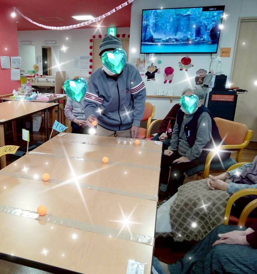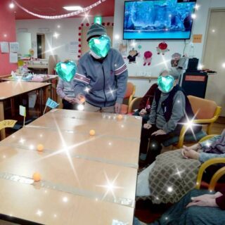皆様ピンポン玉を投げる事をこわごわされ