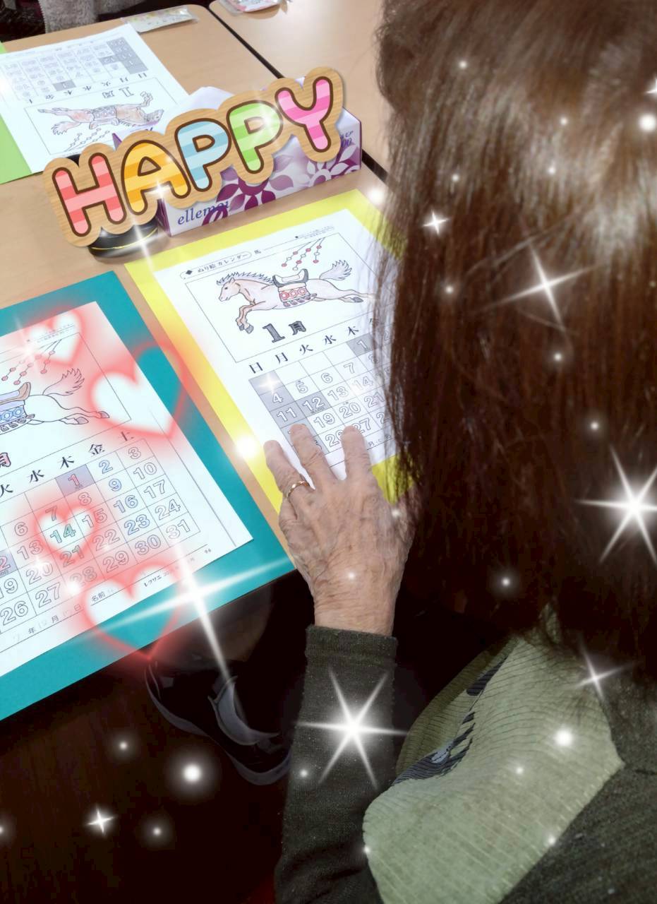 本日ご利用者様達のお部屋に飾るカレンダーを貼って頂きました。
