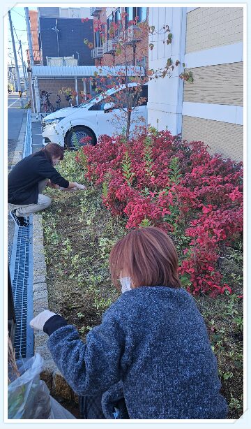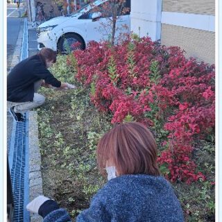 施設前の花壇の雑草抜きも行いました!