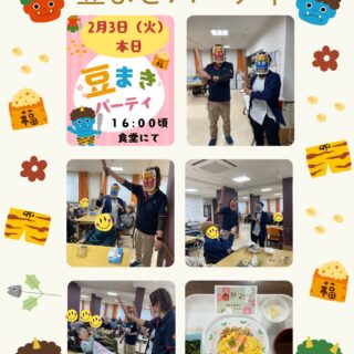今日は節分。寿福の郷今川では、夕食前に食堂にて