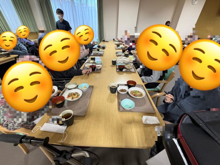 毎日のお食事の風景です☺ 厨房で毎食、全部手作りで温かいご飯を召し上がって頂いています。 色んな会話の中『これなんやろ?』『ぜんまいちゃう?』など楽しそうな雰囲気です。 毎日の「食事」が利用者さんにとってどれほど大きな楽しみであり、生活の支えになっているかを強く感じます。栄養面はもちろん大切ですが、それ以上に“食べる時間が心を満たす時間になる”ことを意識して提供しています。