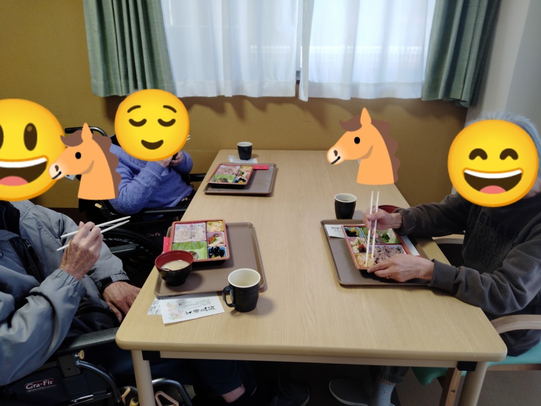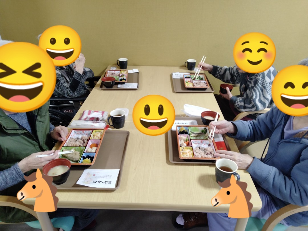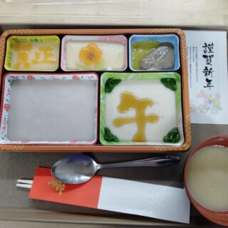 賀正 と午と お花を書いてくださいました💕💕 ゆっくり食べてね😍 どれから頂こうかしら🥰🥰 御雑煮もお餅はムース餅ですよ~😁🎶 おいしい🤗もう完食しちゃうわよ🤩