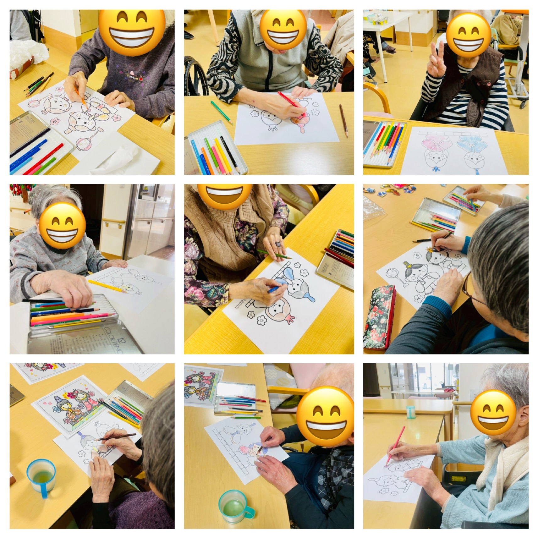 皆さまに塗っていただいているお雛様の塗り絵が、少しずつ集まってきました!!