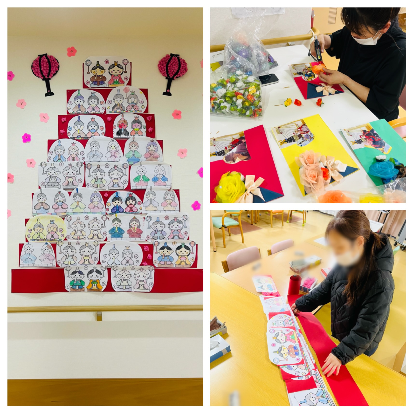 色とりどりに仕上がった作品がそろい、素敵な雛壇が完成しました。🥳