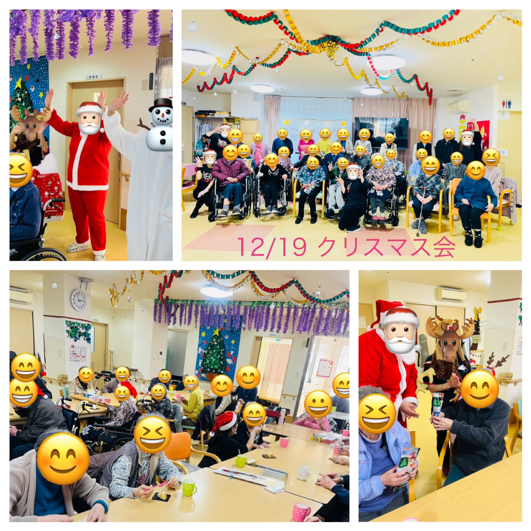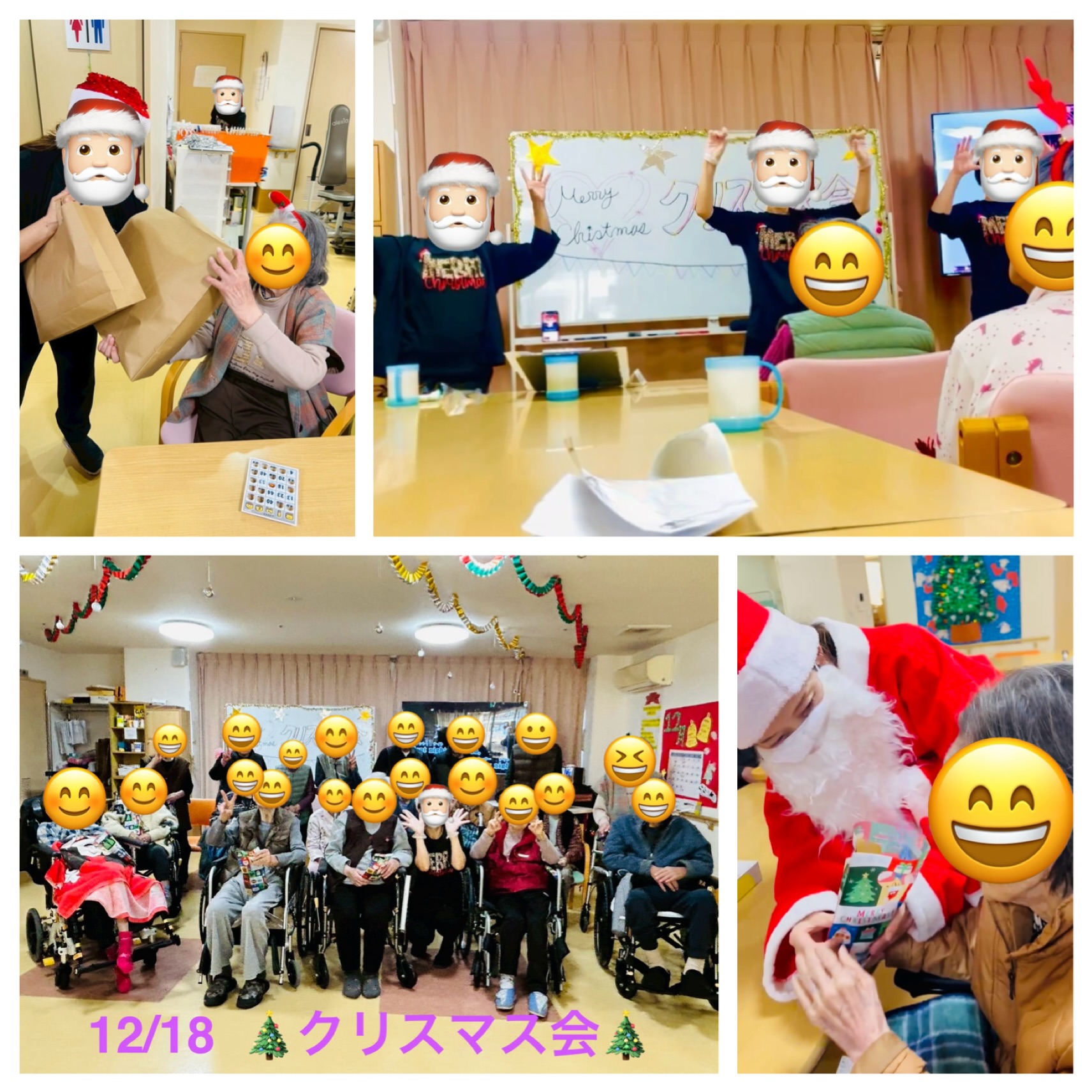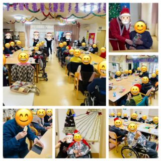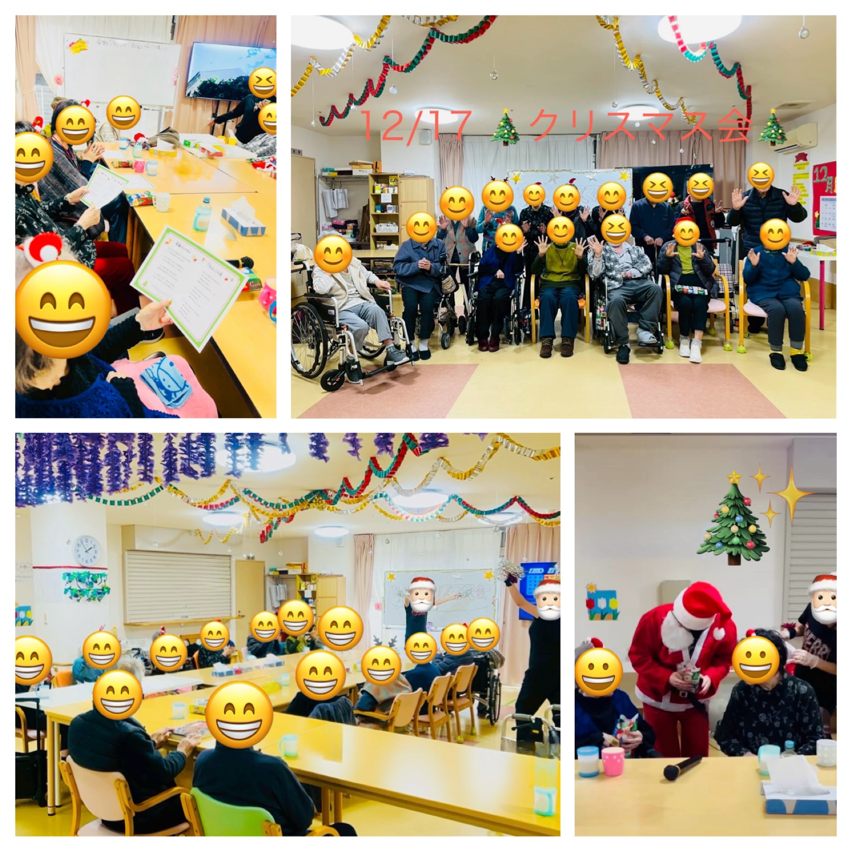 職員のダンス、ビンゴゲーム、手作りケーキ、サンタさんからのプレゼント、合唱、集合写真✌️